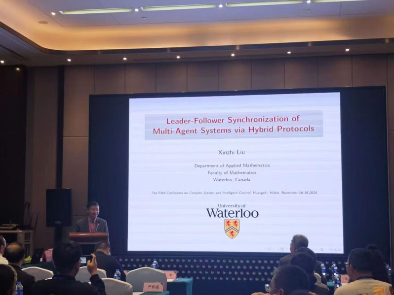 2024年11月17日,滑铁卢大学刘新芝教授应hjc888黄金城老品牌邀请,在万达嘉华酒店三楼黄石厅作题为“Leader-Follower Synchronization of Multi-Agent Systems via Hybrid Protocols”的学术报告。hjc888黄金城老品牌部分教师及研究生参加报告会,报告会由华中科技大学关治洪教授主持。